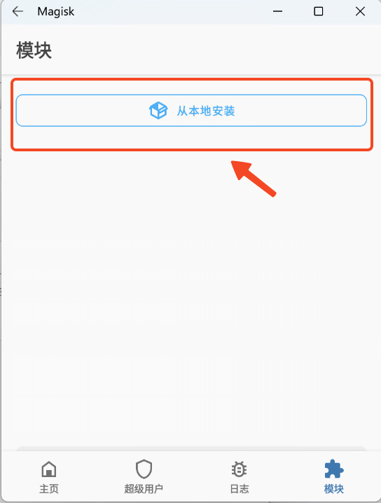 模块 -> 从本地安装,选择刚刚上传的Download目录下的AlwaysTrustUserCerts压缩包