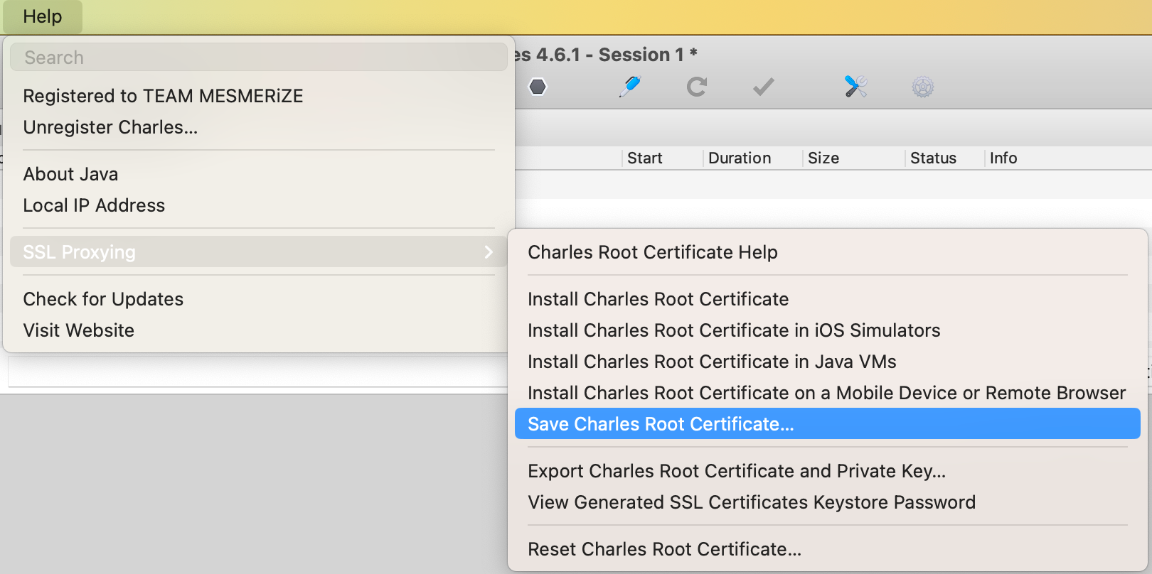 Help -> SSL Proxying -> Save Charles Root Certificate,并选择把证书保存为.cer格式打开WSA 工具箱,使用